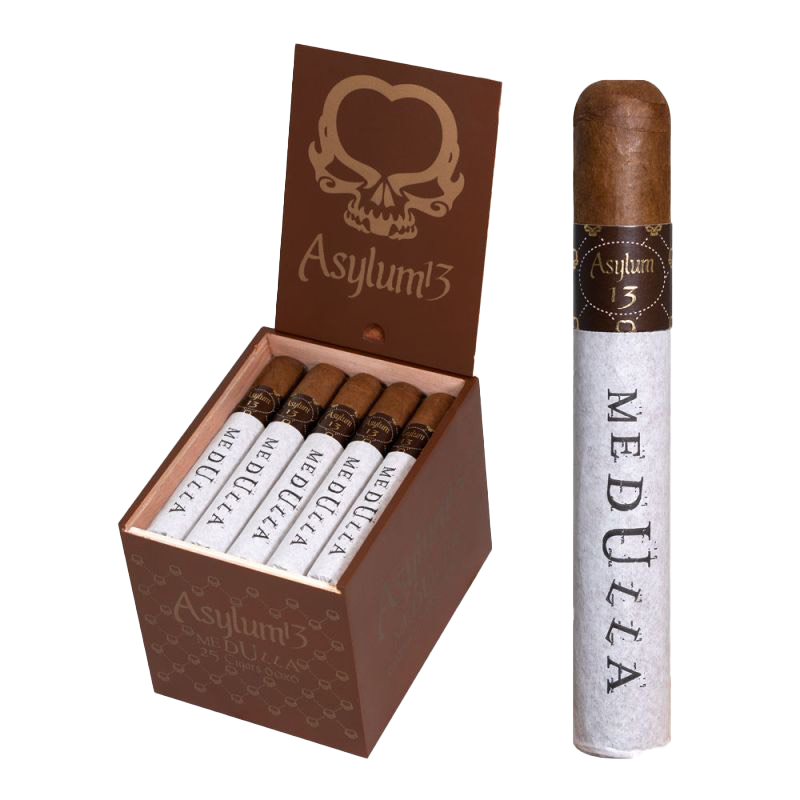 With excellent construction, a slow burn, and a long finish, the Asylum 13 Medulla is a great choice for those who enjoy strong, complex cigars with a Nicaraguan puro blend.