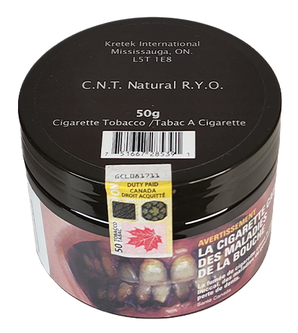 The CNT Canadian Natural Tobacco Organic RYO Jar is a loose-leaf tobacco made from organic Canadian-grown tobacco. It is carefully crafted using organic farming practices, ensuring that the tobacco is free from synthetic chemicals or additives. This Roll-Your-Own (RYO) tobacco offers a smooth, mild to medium-bodied smoke with earthy, slightly sweet, and natural flavor notes. The organic nature of the tobacco provides a clean, pure smoking experience, making it an excellent choice for those who prefer a more natural, chemical-free option for rolling their own cigarettes. The convenient jar packaging allows for easy use and storage, providing a high-quality, organic tobacco experience.