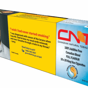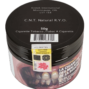 The CNT Canadian Natural Tobacco Organic RYO Jar is a loose-leaf tobacco made from organic Canadian-grown tobacco. It is carefully crafted using organic farming practices, ensuring that the tobacco is free from synthetic chemicals or additives. This Roll-Your-Own (RYO) tobacco offers a smooth, mild to medium-bodied smoke with earthy, slightly sweet, and natural flavor notes. The organic nature of the tobacco provides a clean, pure smoking experience, making it an excellent choice for those who prefer a more natural, chemical-free option for rolling their own cigarettes. The convenient jar packaging allows for easy use and storage, providing a high-quality, organic tobacco experience.