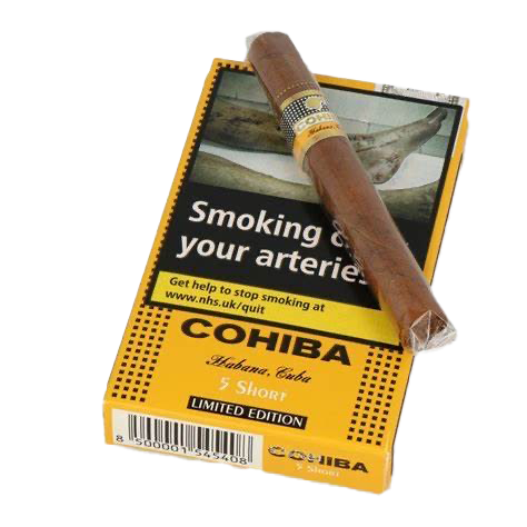 The Cohiba Shorts is a small Cuban cigar (Shorts size: 26 ring gauge x 90mm / 3.5 inches) that offers a surprising depth of flavor in a compact format. Despite its size, it provides a medium to full-bodied experience with notes of earth, wood, and spice, accompanied by hints of cedar, coffee, and subtle creaminess. The cigar burns evenly and offers a smooth draw, lasting around 20-30 minutes. It’s a great option for those who want a quick yet rich smoking experience from the renowned Cohiba brand.