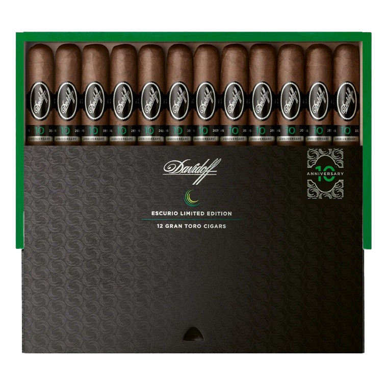 Crafted to celebrate the 10th anniversary of the bold and exotic Escurio line, the Davidoff Escurio 10th Anniversary Limited Edition is a masterful blend of aged tobaccos offering a rich and complex experience. This Gran Toro delivers a dynamic profile with initial notes of cream, cappuccino, and vanilla, evolving into layers of leather, apricot, licorice, and black pepper. The finish is long and smooth, featuring bittersweet chocolate, almonds, and hints of honey and spice.