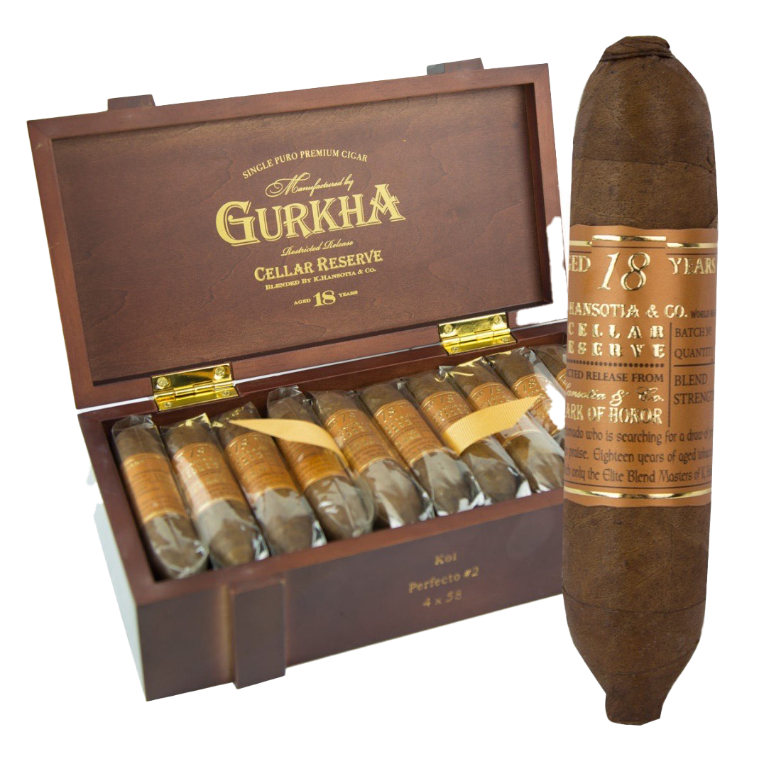 The Gurkha Cellar Reserve Special Edition 18 YR KOI – Perfecto (5″ x 54) is a medium to full-bodied cigar that features a rare and exceptional blend. It is wrapped in an 18-year-aged Colorado wrapper and filled with a combination of Dominican and Nicaraguan long-fillers, providing a rich and complex flavor profile. Smokers can expect notes of cedar, cocoa, earth, and spice, with a smooth and creamy finish. The Perfecto shape allows for a unique smoking experience, ensuring a cool, even burn and an enjoyable complexity as the cigar evolves. The Cellar Reserve Special Edition KOI is known for its exceptional craftsmanship and depth of flavor, making it a premium choice for seasoned cigar enthusiasts.