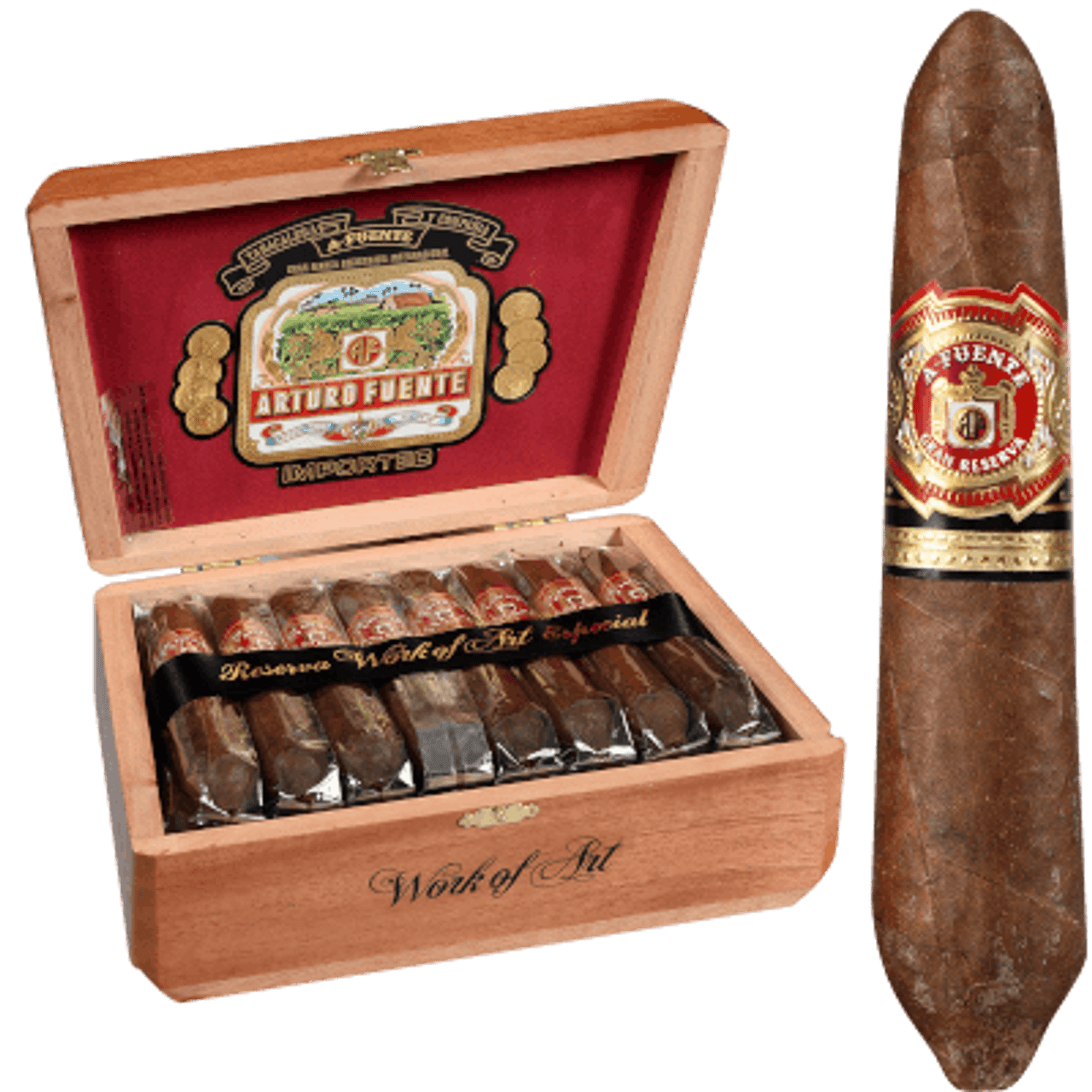 The Hemingway series by Arturo Fuente is a tribute to classic craftsmanship, and the Work of Art Natural stands out with its unique perfecto shape—short, stout, and expertly rolled. It features a Cameroon wrapper over a Dominican binder and filler, offering a medium-bodied experience. Expect rich notes of cedar, spice, and subtle sweetness, with a smooth, creamy finish. The construction and draw are consistently top-tier, making it a favorite among aficionados who appreciate elegance in a short smoke.