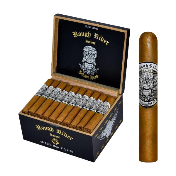 The Rough Rider Sweets Connecticut Little Guys are compact, sweet-tipped cigars measuring 4.5 inches in length with a 38-ring gauge, offering a mellow to medium-bodied smoke. Handmade in the Dominican Republic, they feature an Ecuadorian Connecticut Shade wrapper over Piloto Cubano binder and Criollo 98 and Piloto Cubano long-fillers. This blend delivers creamy notes of honey sweetness with a hint of cedar, making them a delightful choice for fans of sweet-tipped cigars.