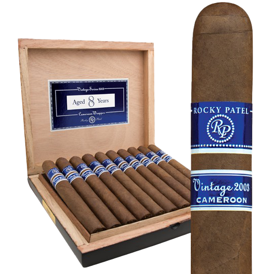 The Rocky Patel Vintage 2003 Toro (6″ x 52) is a medium-bodied premium cigar featuring an exquisite 8-year-aged Cameroon wrapper. It is blended with Dominican and Nicaraguan long fillers, delivering a rich and complex flavor profile with notes of sweet spice, cedar, nuts, and a hint of earthiness. The Toro size provides a smooth, well-balanced smoking experience with a long, flavorful finish.
